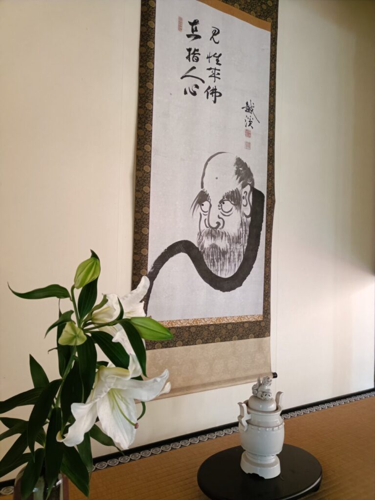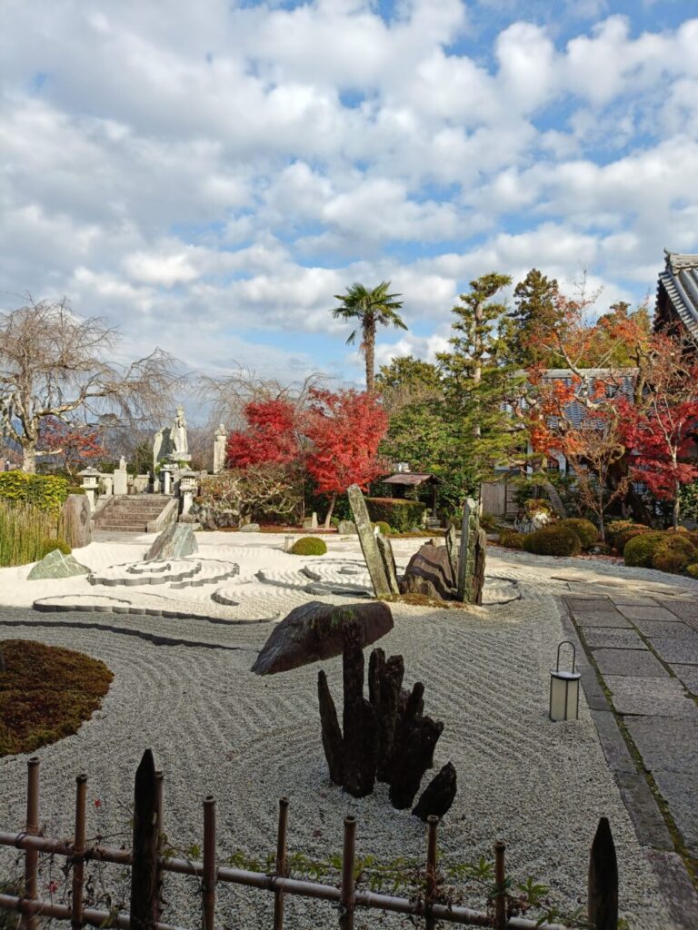 白砂を雲海に見立てて、龍が舞う様子を表現した枯山水庭園です。