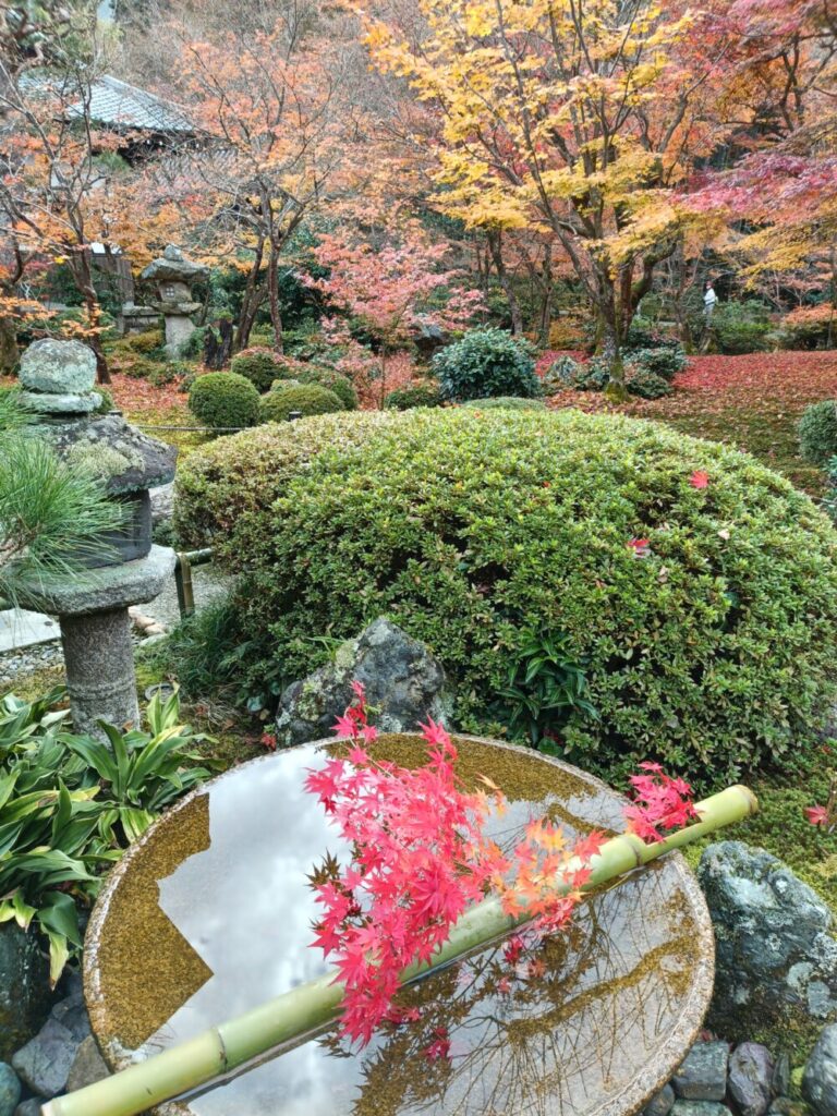 縁が広い手水鉢を用いた水琴窟はあまり例がないようで、古くから「圓光寺型」として多くの趣味人の愛されて来たそうです。