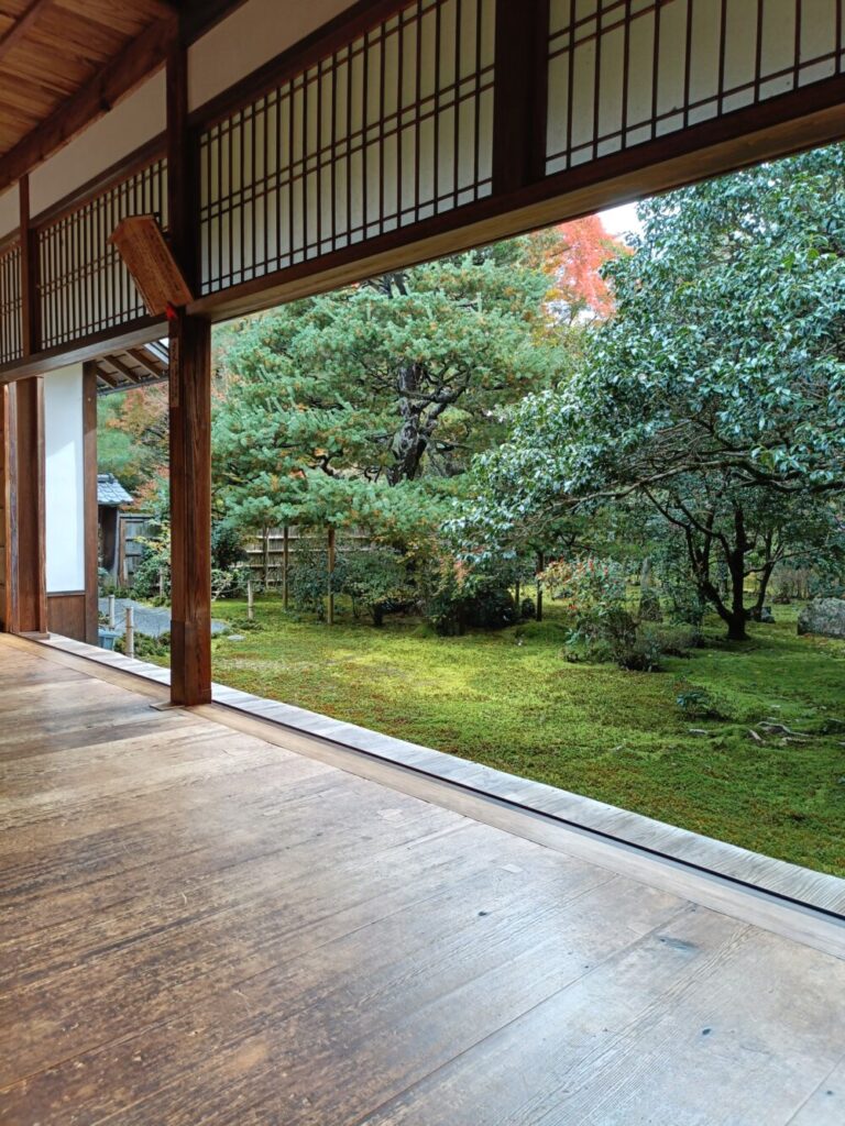 地蔵院の庭は木々が多く、砂ではなく苔で覆われています。