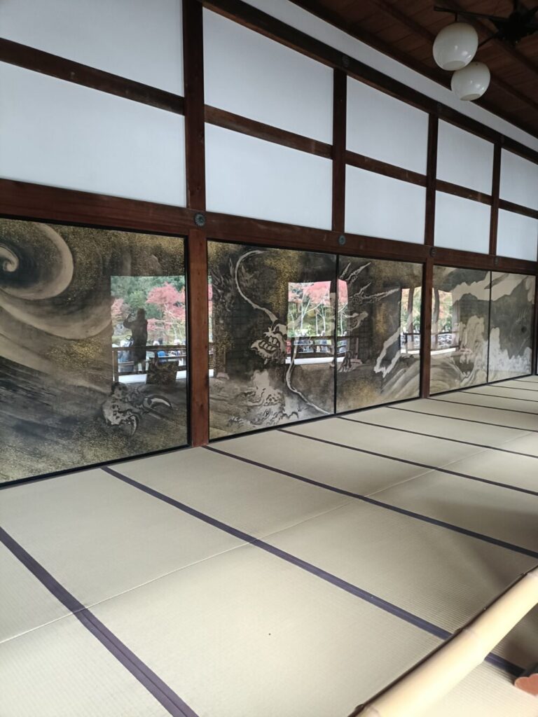 方丈の襖絵の雲龍図も見事でした✨反射して庭園が映し出されている様子も感動します(^-^)