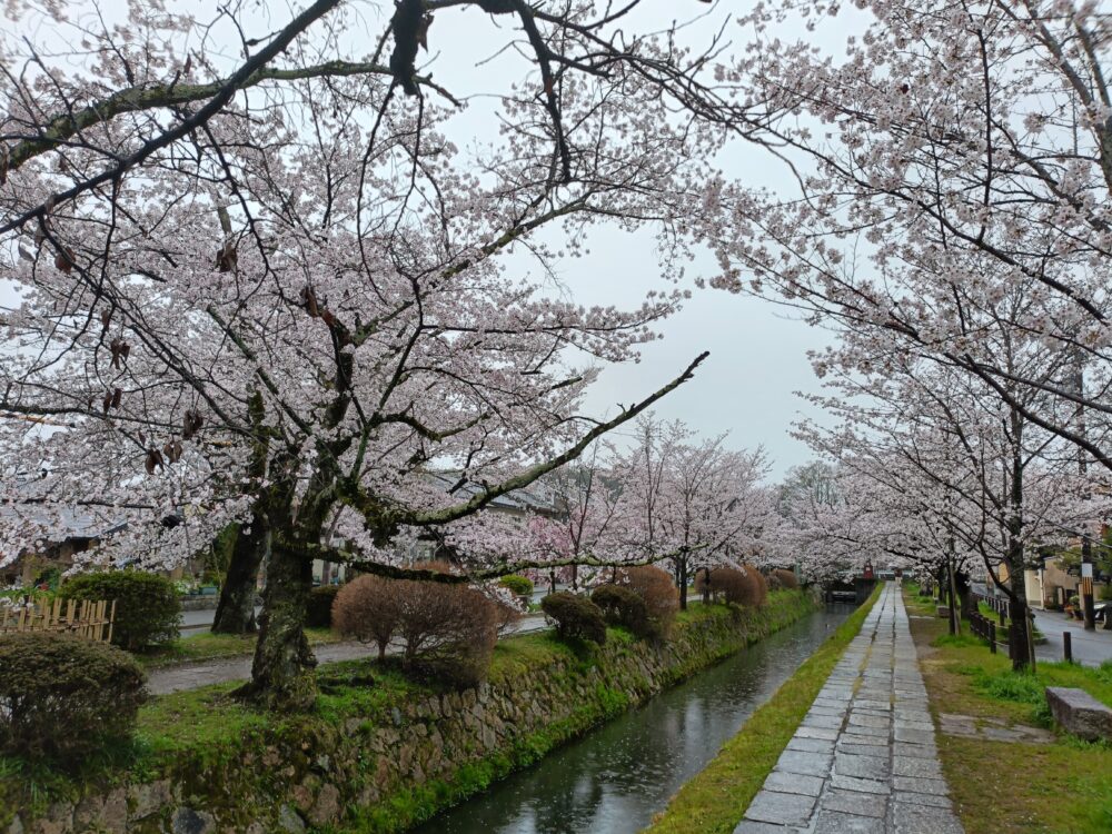 琵琶湖疏水に沿って桜が咲き誇り、