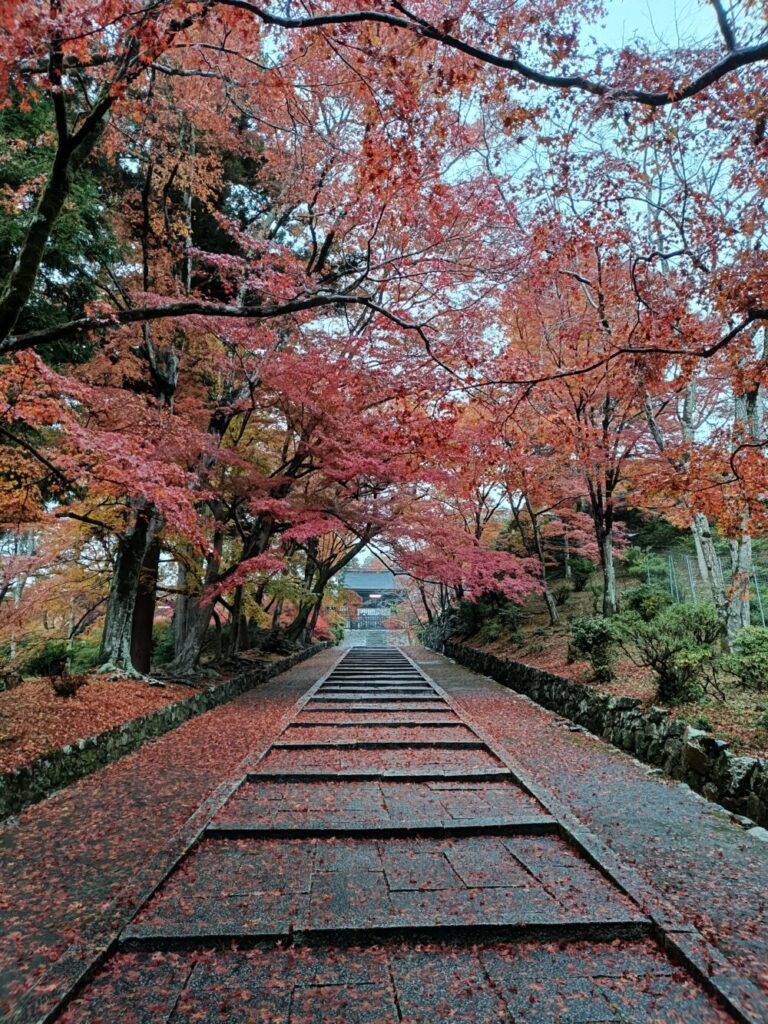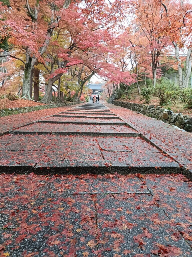 勅使門に続く坂道を染める敷紅葉🍁✨