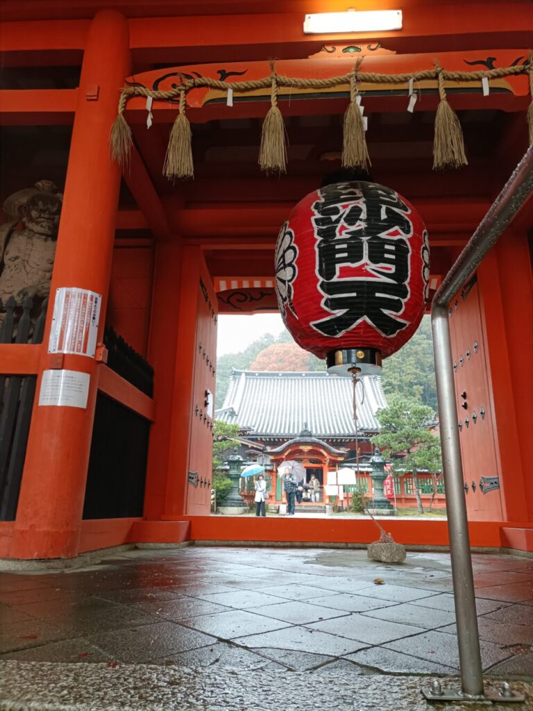 急な石段を登った先にそびえる大提灯(おおじょうちん)と阿吽像が目印の本堂の表門(^-^)