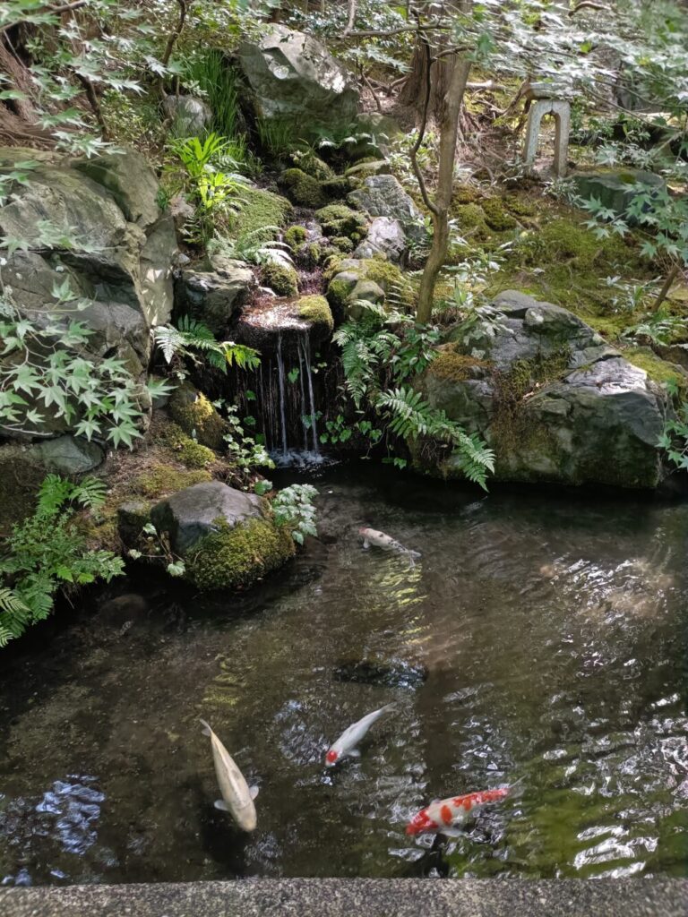 池の対岸の大きな岩を臥龍の頭に見立て、