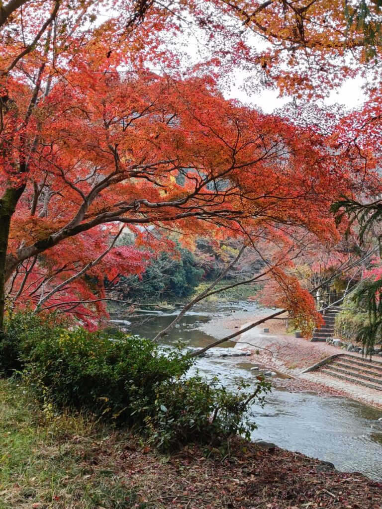 帰り道、川の紅葉🍁が綺麗に色づいていました(^-^)