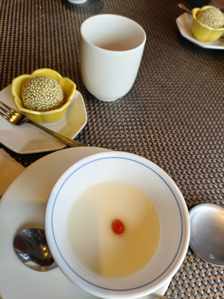 最後にはデザートの杏仁豆腐🍮と暖かなお団子✨↓