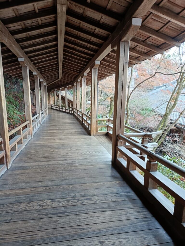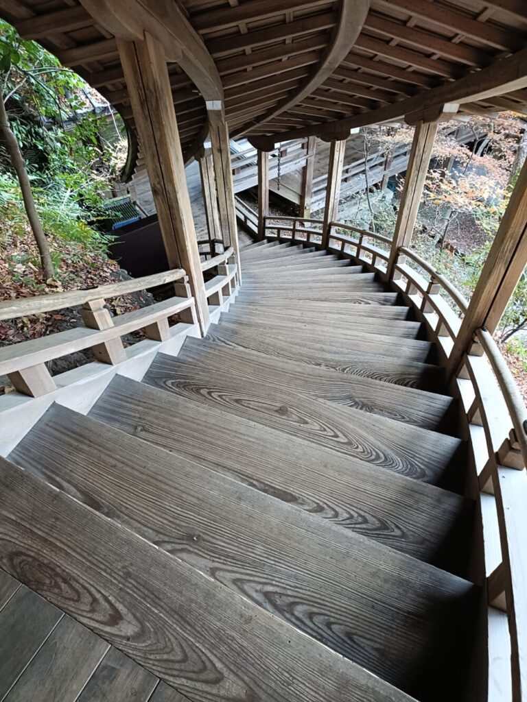 山腹の斜面に沿い巧みに木組みされた廊下✨