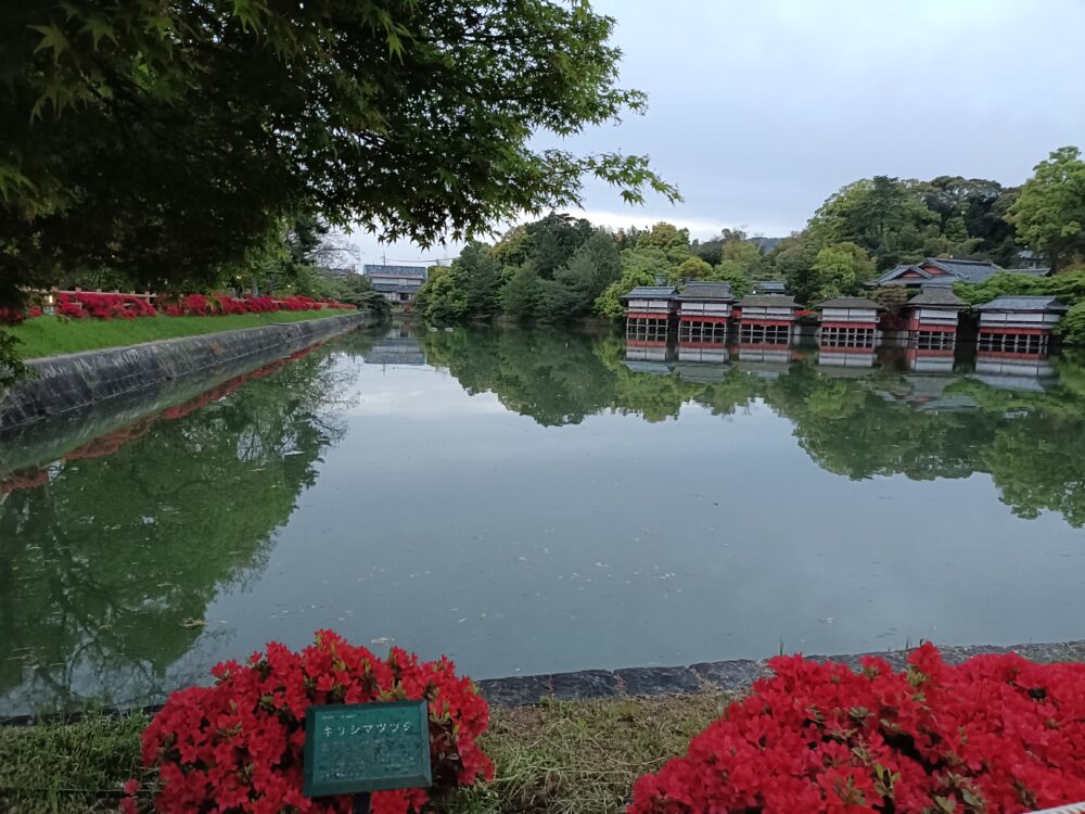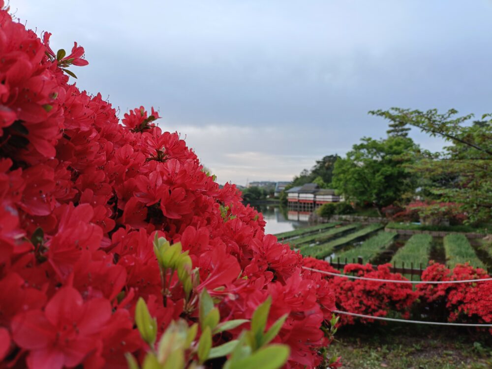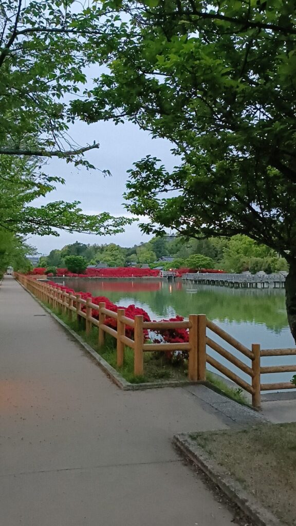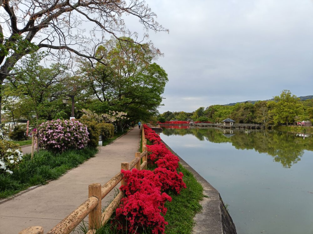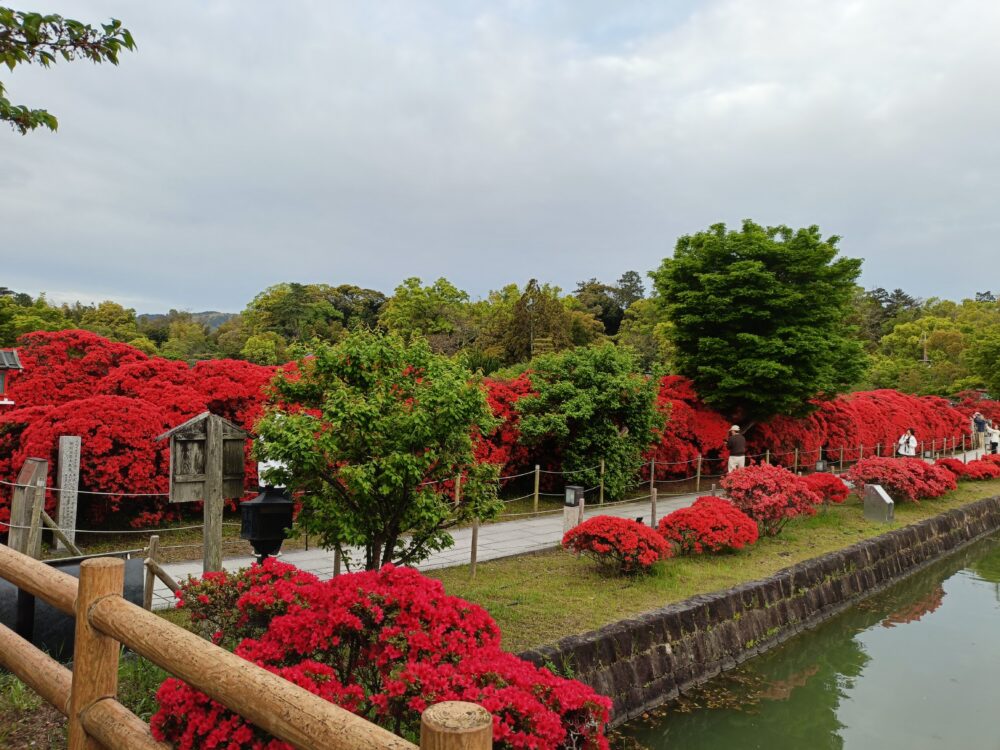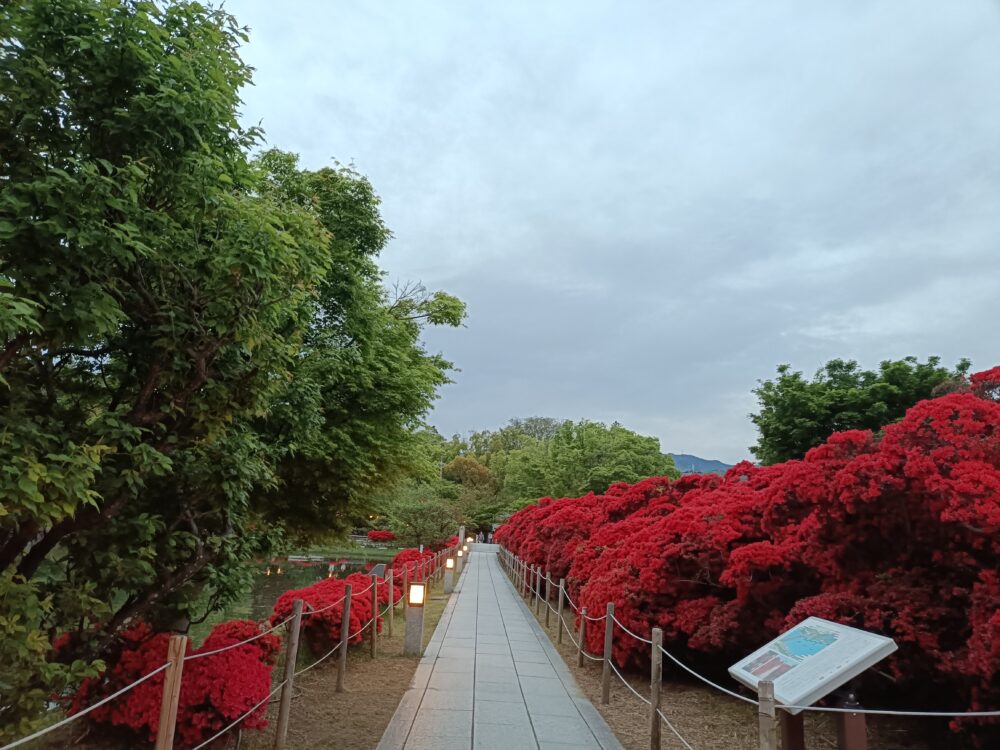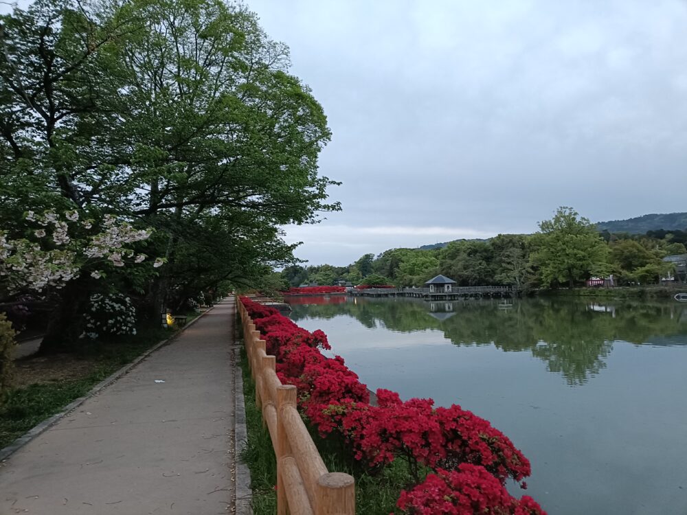 八条ケ池の周りを真紅のキリシマツツジが覆っていました🌹