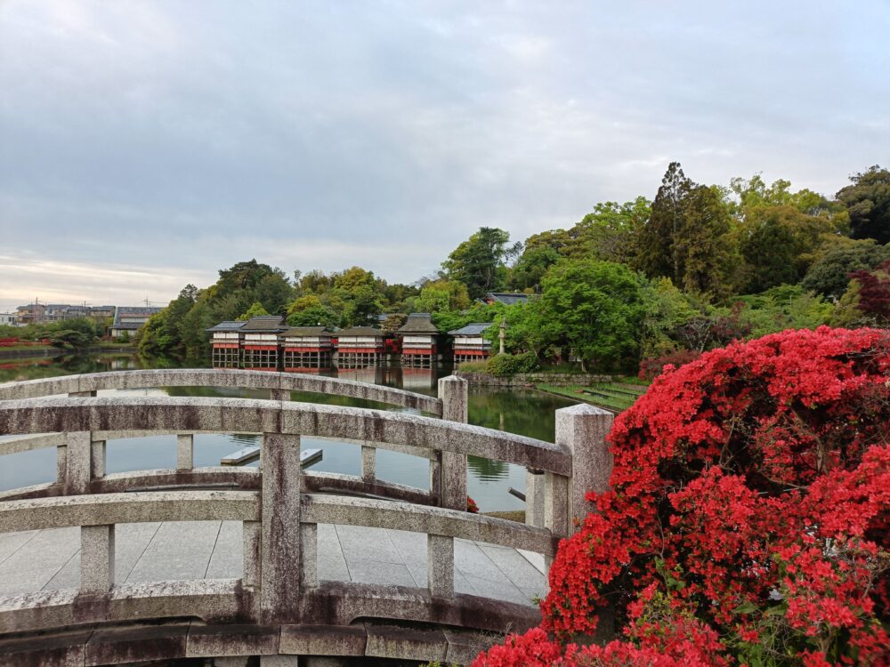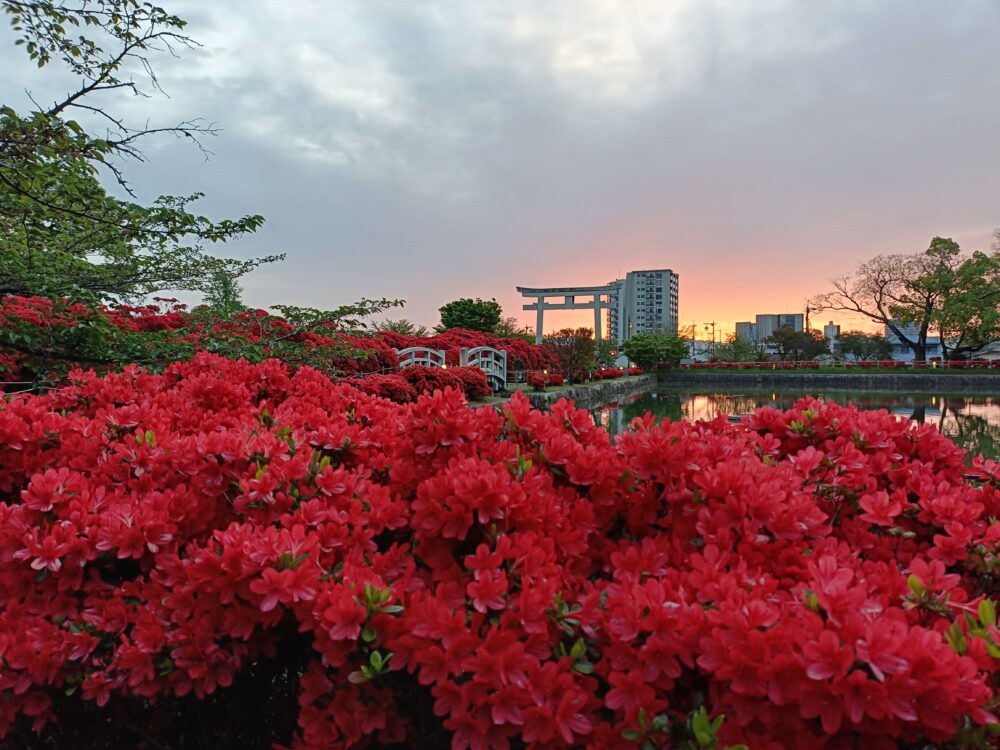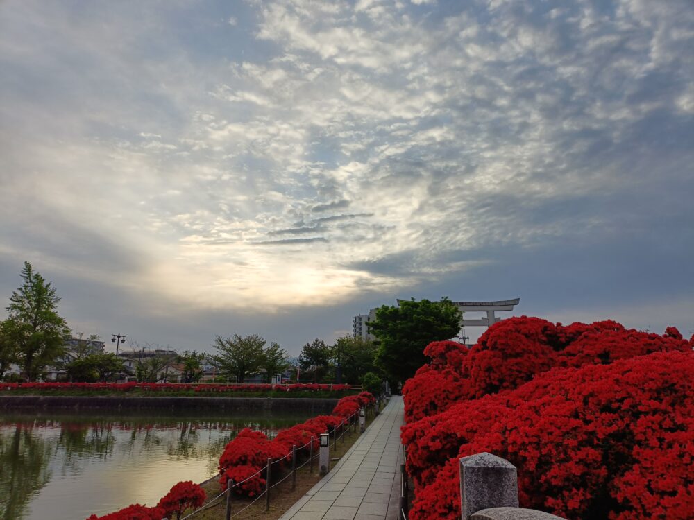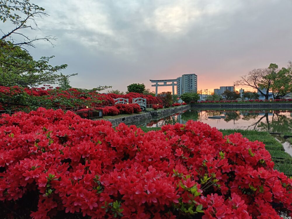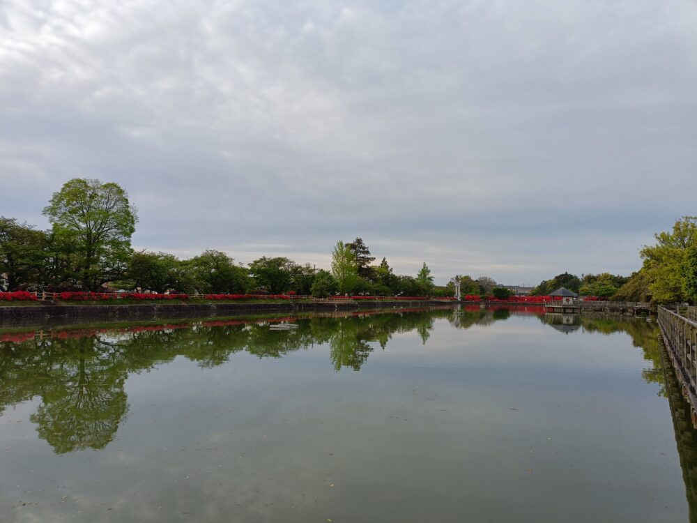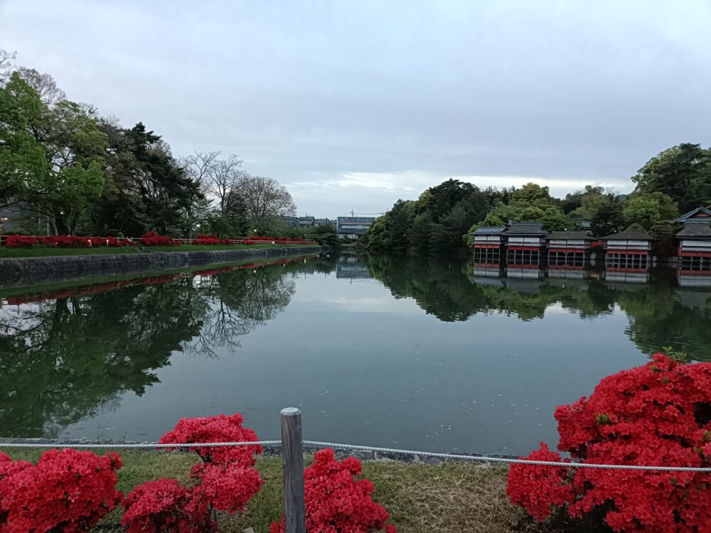 八条ケ池の周りを真紅のキリシマツツジが覆っていました🌹