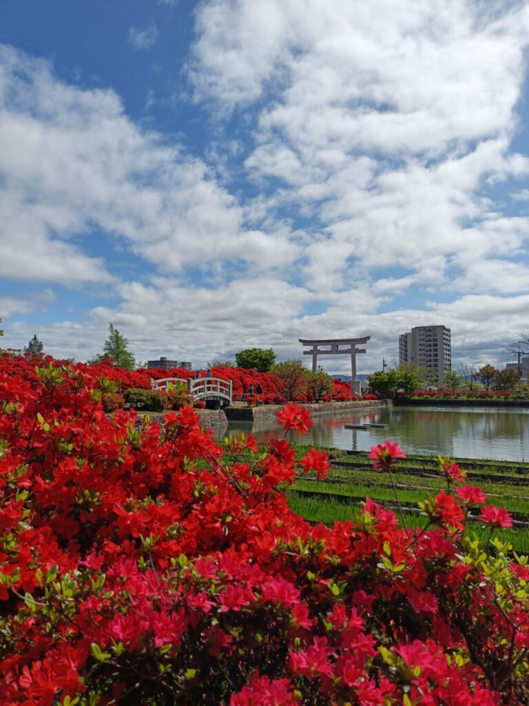 この大きな鳥居をバックに4月後半から5月初旬にかけて