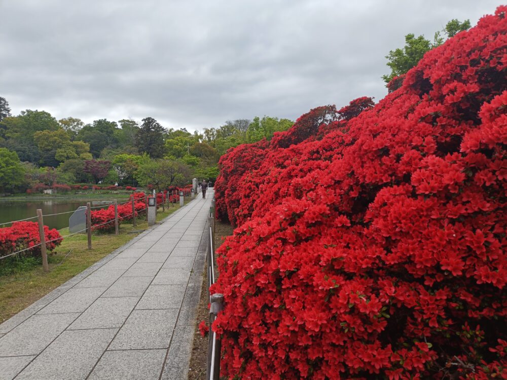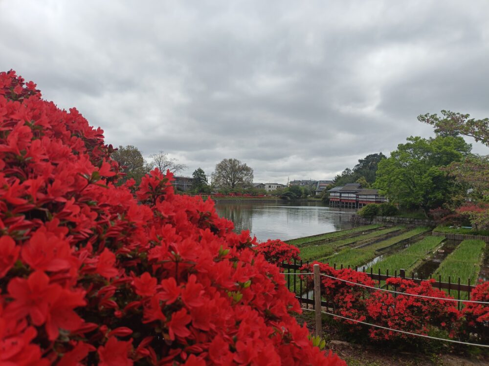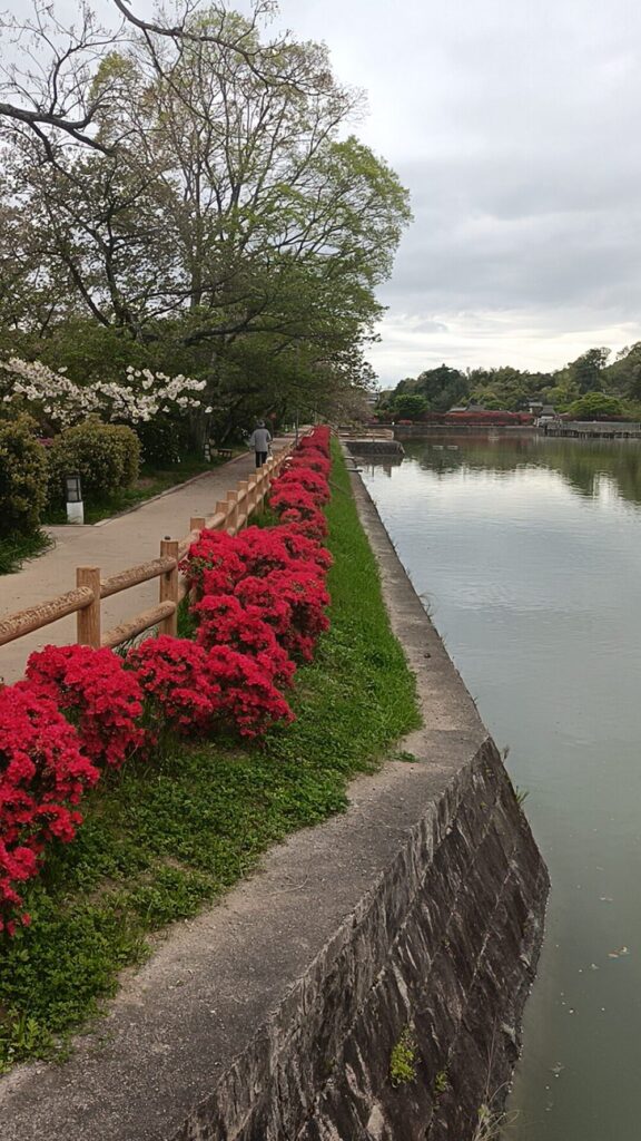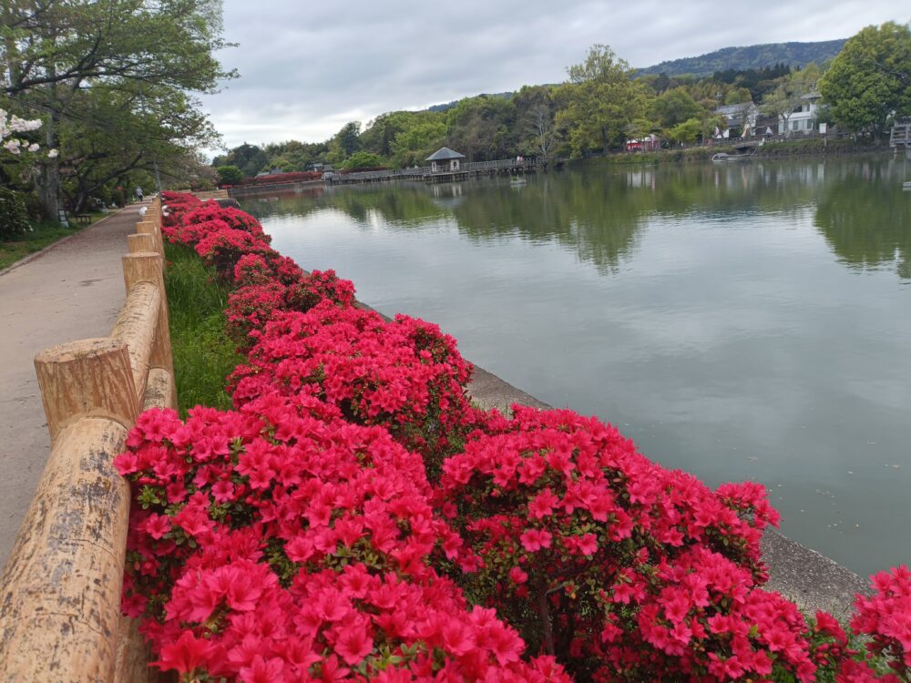 八条ケ池の周りをキリシマツツジが綺麗に囲んで、咲き誇っていました✨