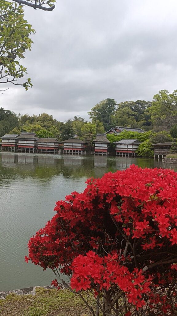 池のほとり、池畔にある、長岡京名物のタケノコ料理(春・4〜5月)が有名な老舗料亭です✨