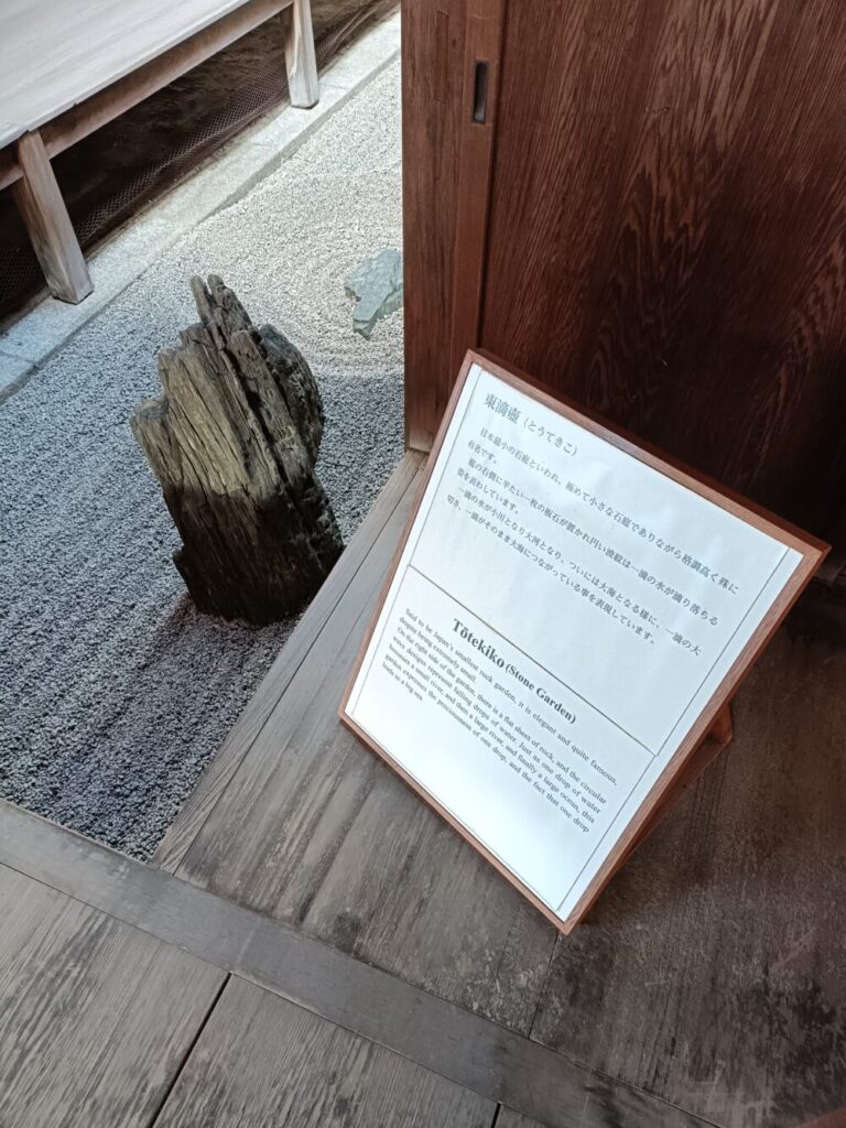 白砂に石を配した「日本一小さい」とも言われる4坪の石庭です。