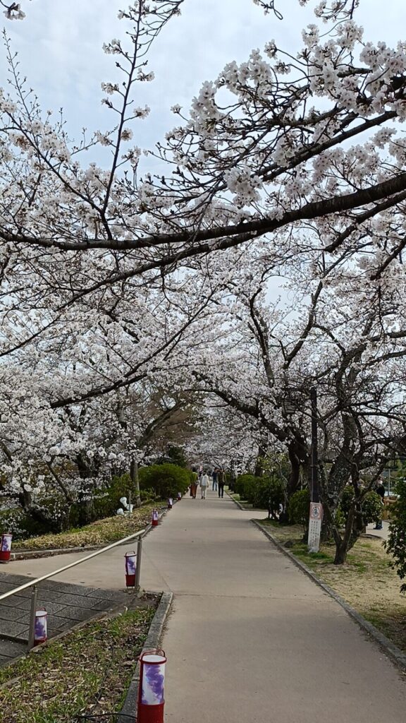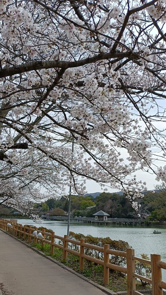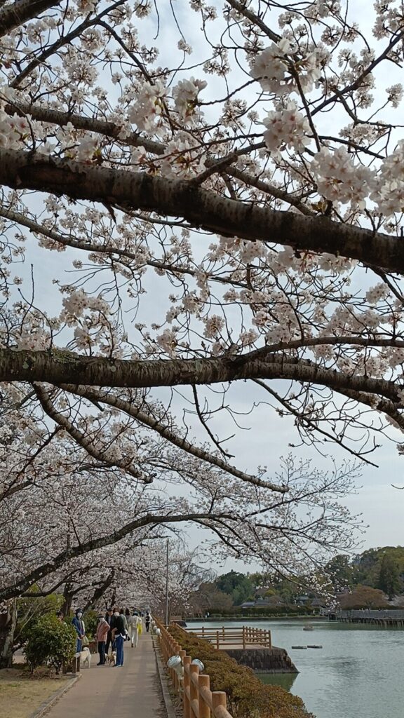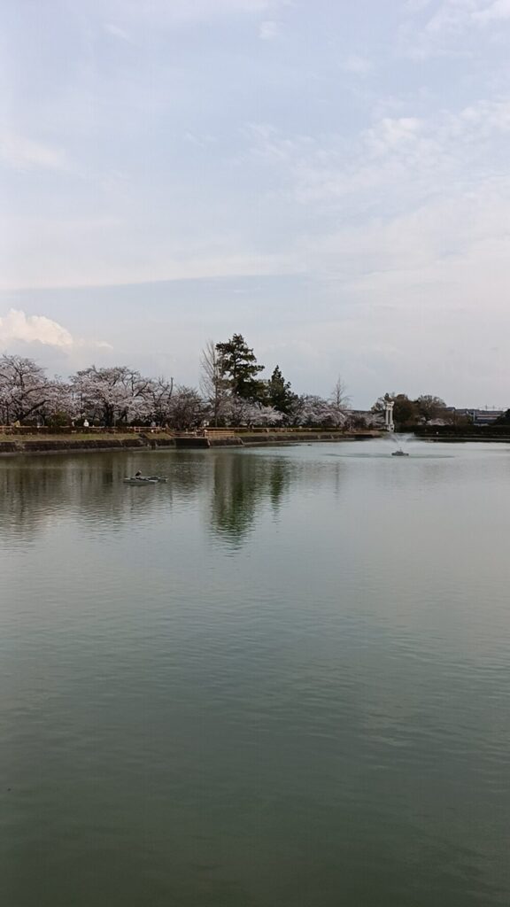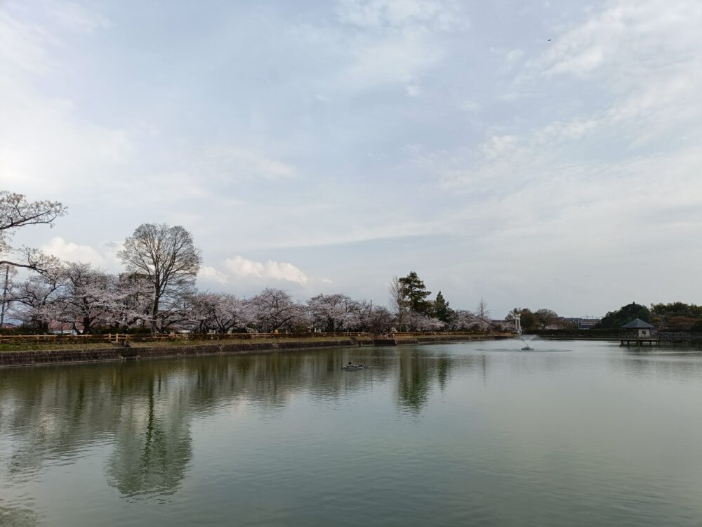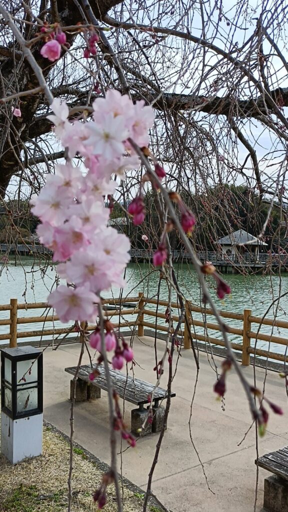 八条ヶ池の東堤に約30本のソメイヨシノが立ち並んでいます🌸