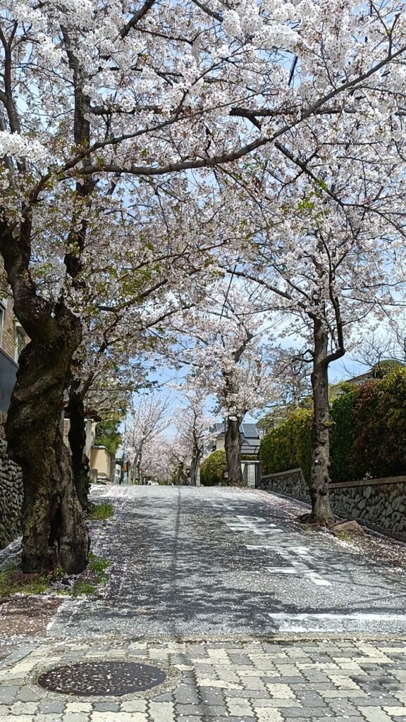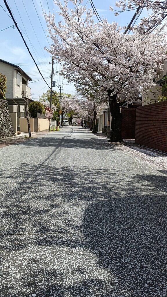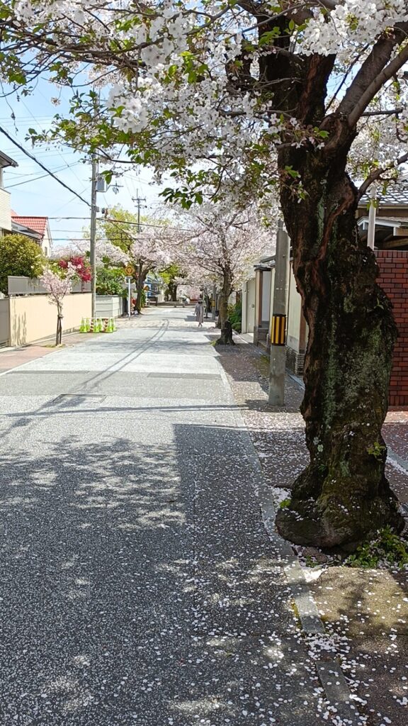 散り桜が綺麗な並木道を歩きます🚶