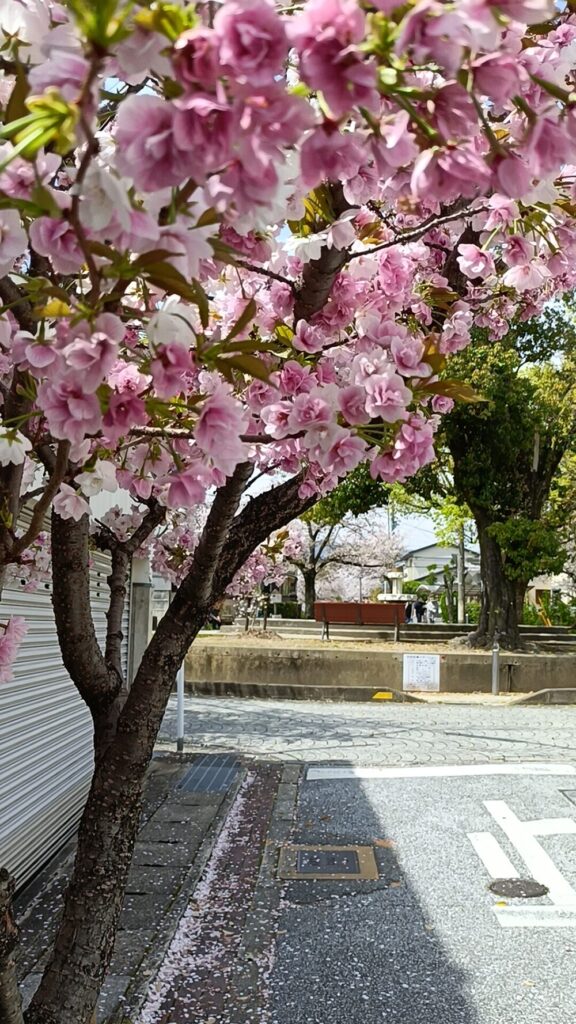 少しずつ散り始め地面に桜の花びらが敷かれていました🌸