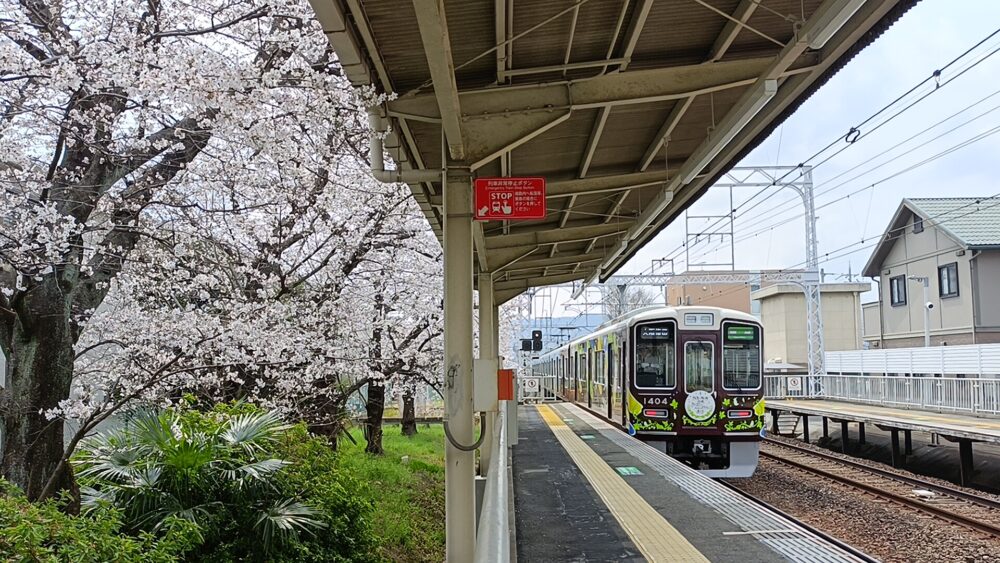 線路沿いに桜がたくさん植えられている駅がありました🌸