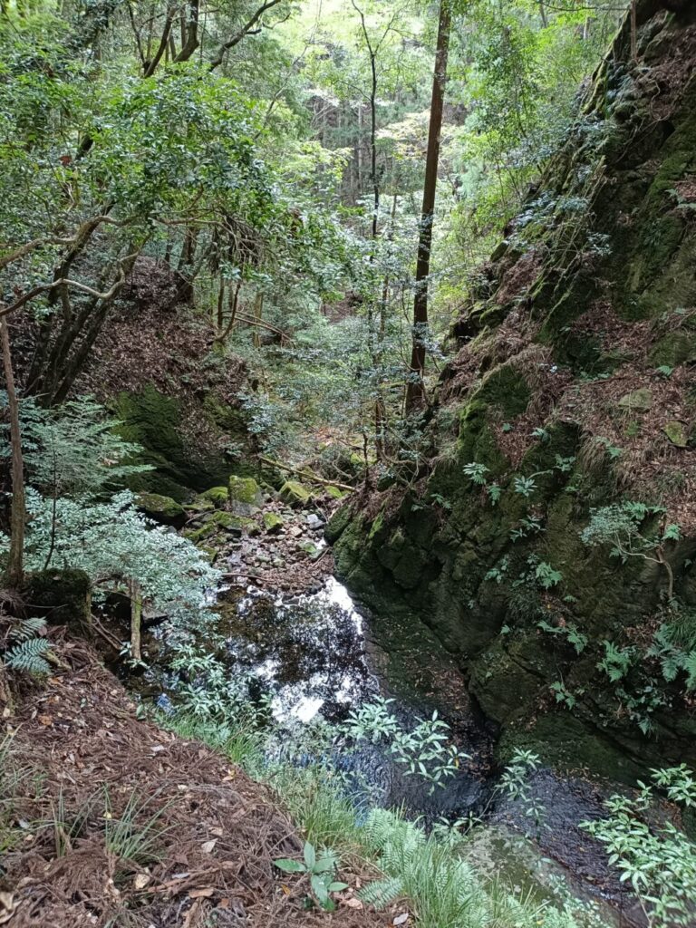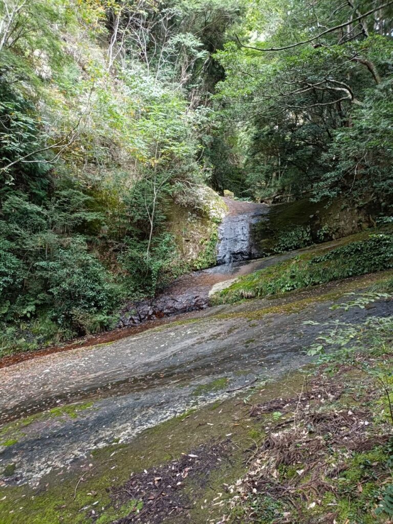 龍穴の前にも一枚岩の巨岩を伝わって流れてくる清らかな川が流れていました。