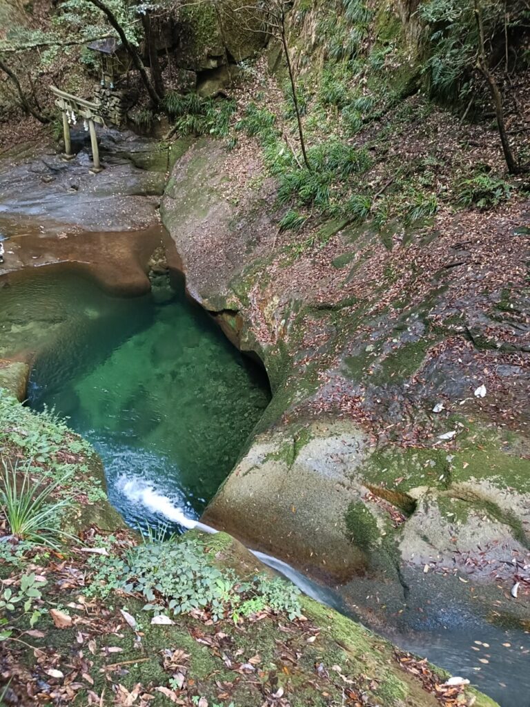 神聖な空気に包まれ、吸い込まれるような美しい滝壺。