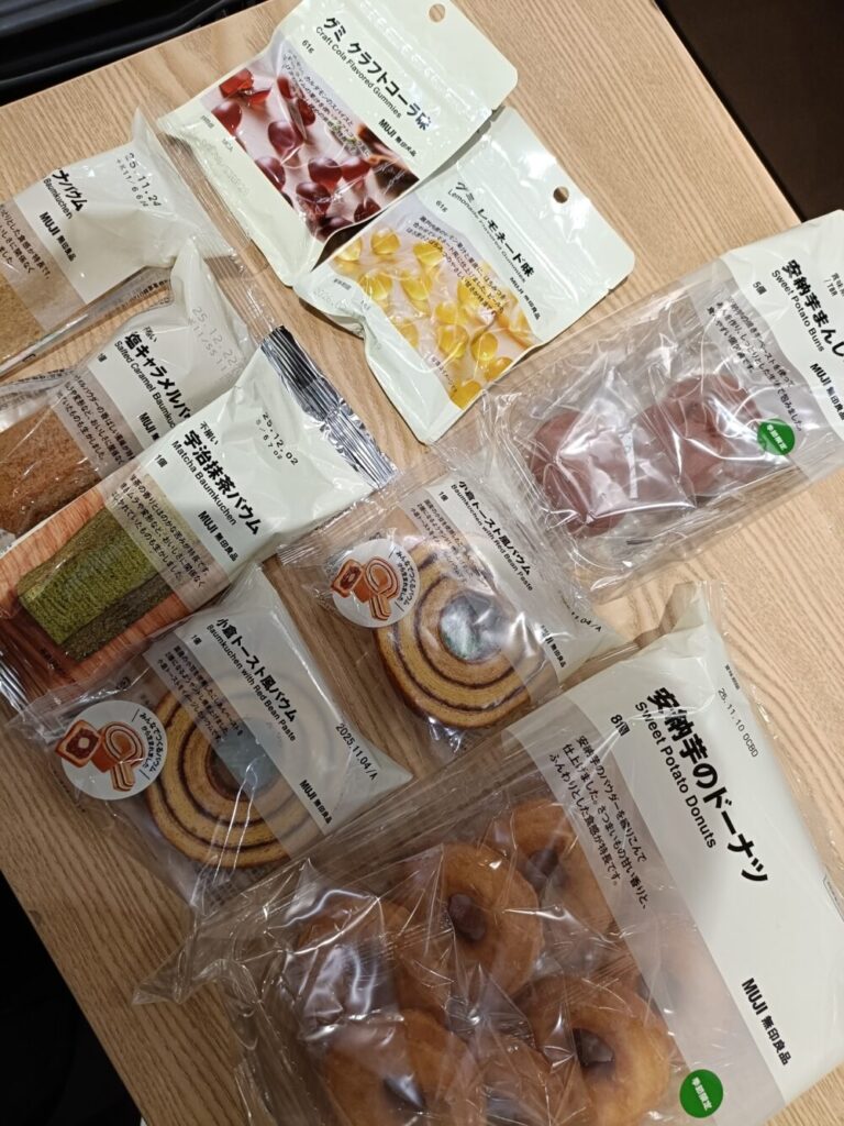 今回購入したドーナツやまんじゅうといった和洋のおやつも充実しています♡